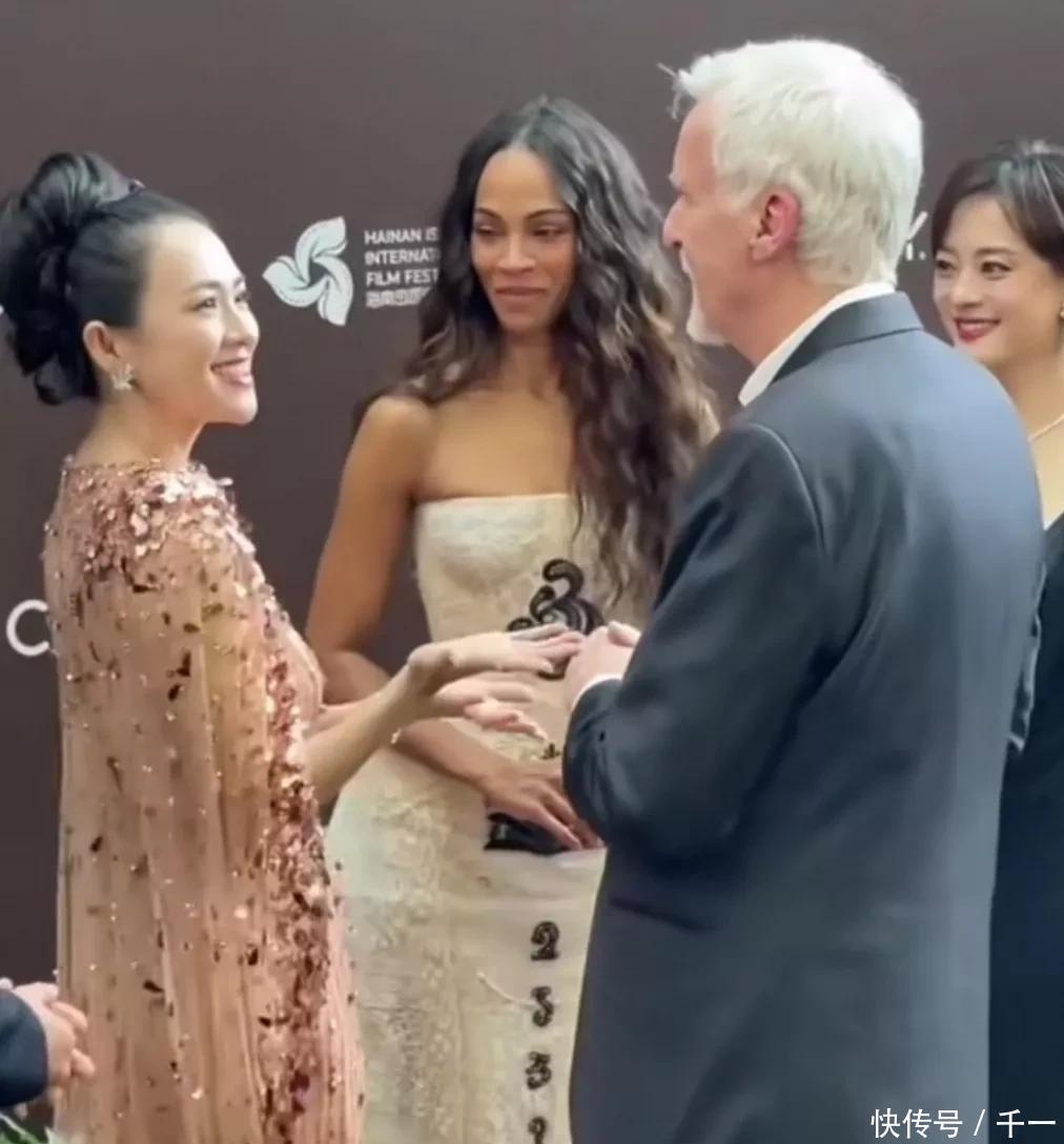 而备受网友关注和讨论的是,章子怡和导演卡梅隆在现场聊天的一幕。