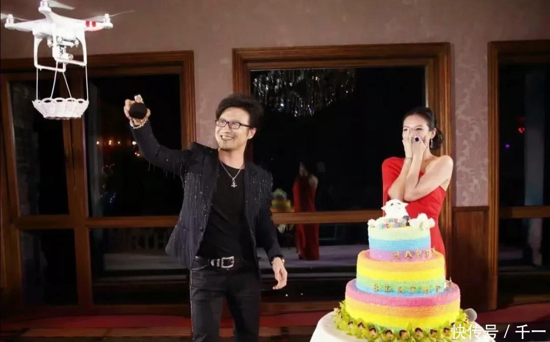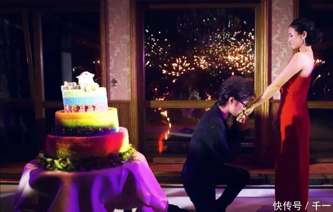 三层的彩色蛋糕,无人机送戒指,单膝跪地为章子怡戴戒指,然后深情亲吻。汪峰的每一个环节,都精准的打动到章子怡。