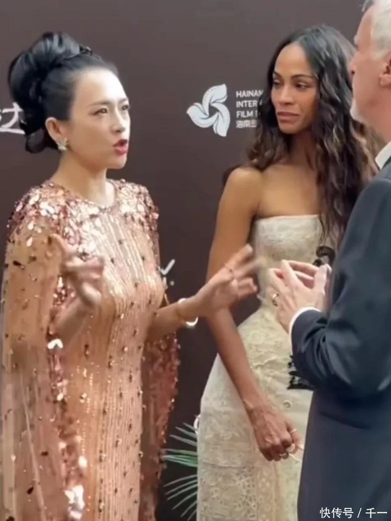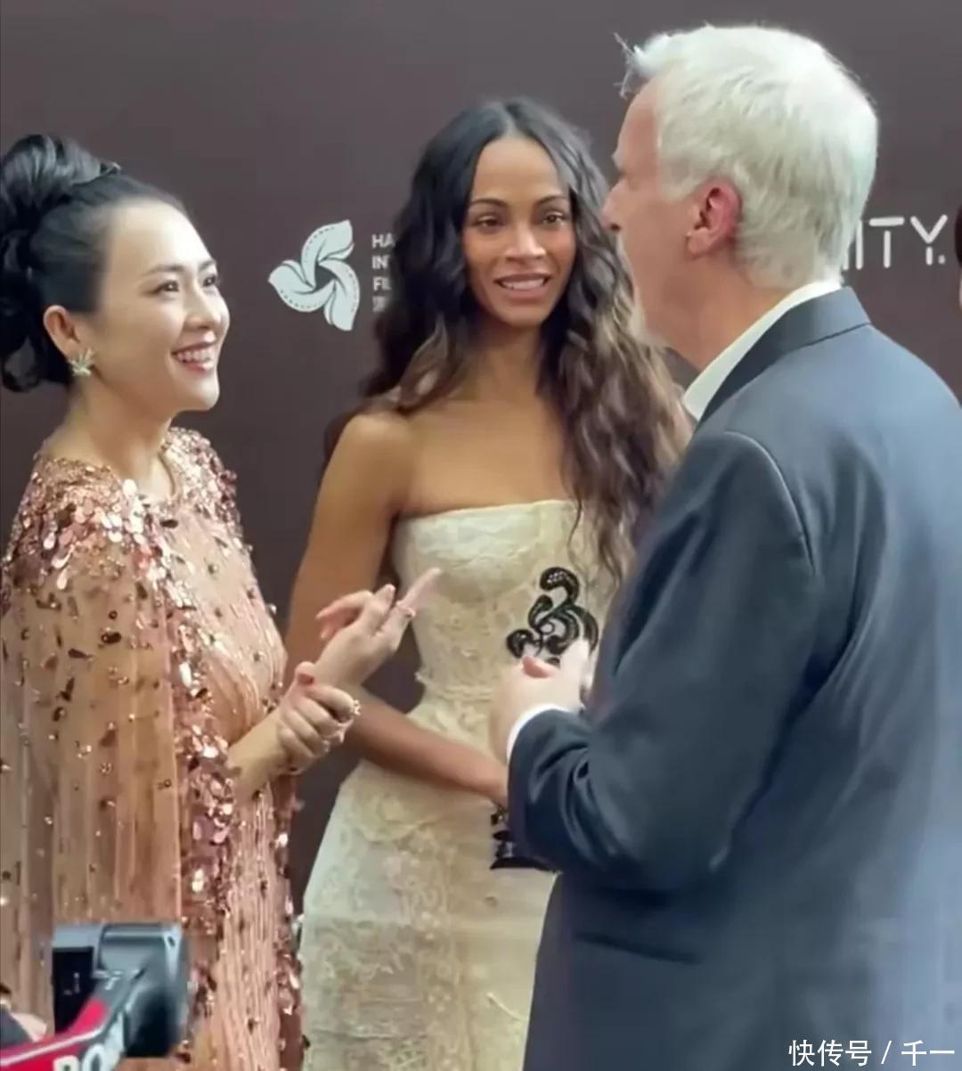 看她在与卡梅隆交谈时,那侃侃而谈,自信从容的模样,把一旁的左伊索尔达娜吸引住了。章子怡说话的时候,左伊索尔达娜就一直看着她,满脸的欣赏。