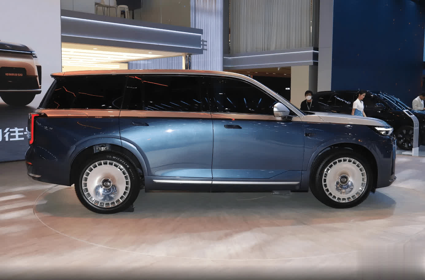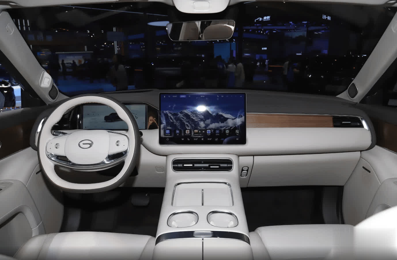 不可否认近几年自主汽车品牌的造型设计能力都是突飞猛进,尤其是这种新能源定位的车型颜值看起来都不错,广汽传祺向往S9直接采用了大量的流行元素。特别是为了凸显高级的感觉,这次上海车展上亮相的版本还采用了双拼色涂装,车身侧面看甚至还有类似迈巴赫那种大饼轮毂,这在同级别领域是非常少见的,整体质感看起来已经相当唬人。而且细节方面也有比较炫酷的数码灯光效果。
